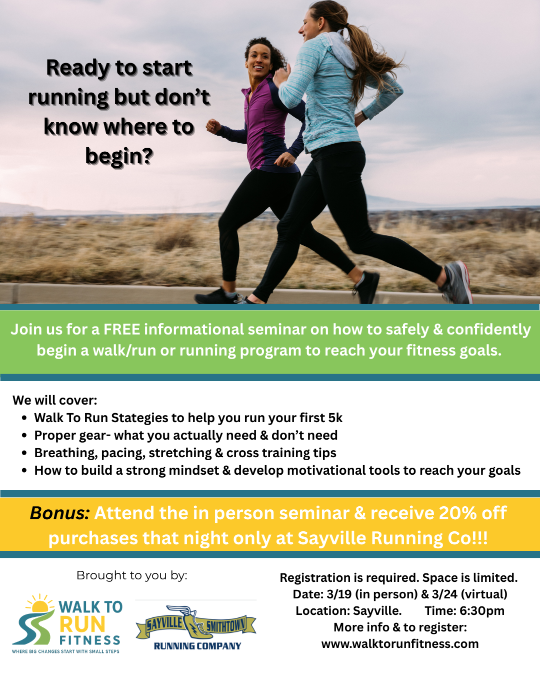 Date: In Person - Thursday, March 19th at 6:30 at the Sayville Running Co. (in person)